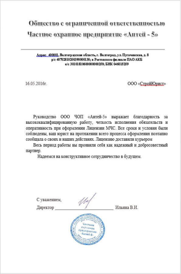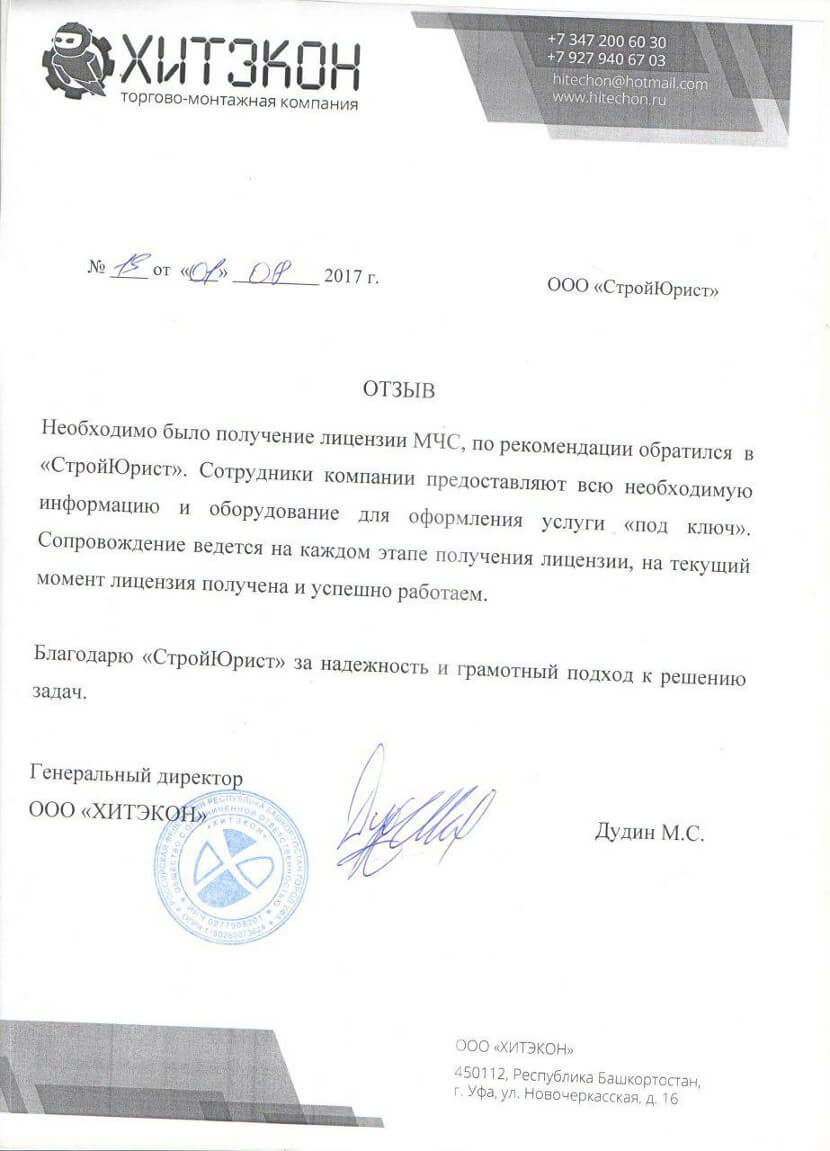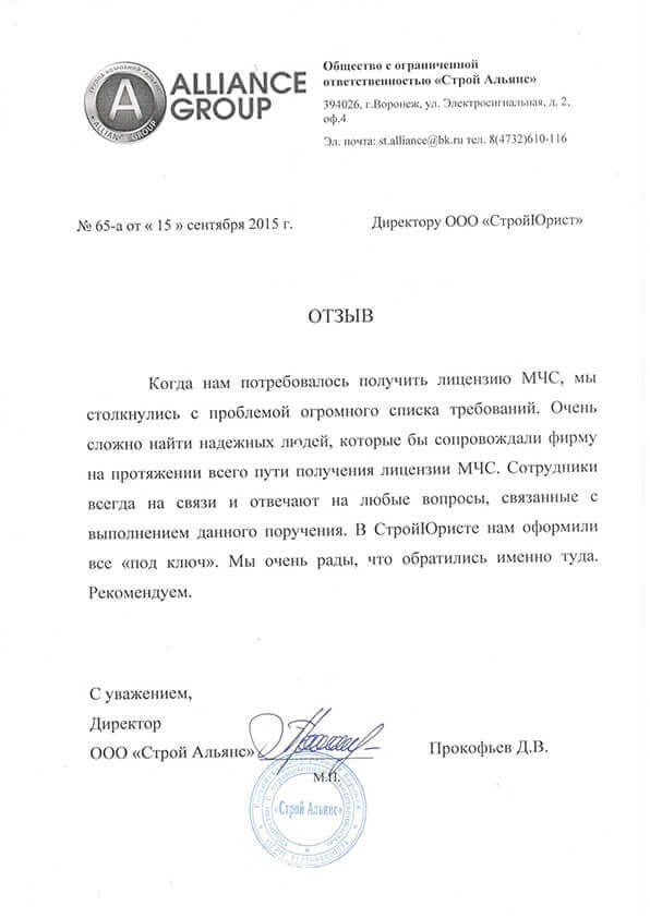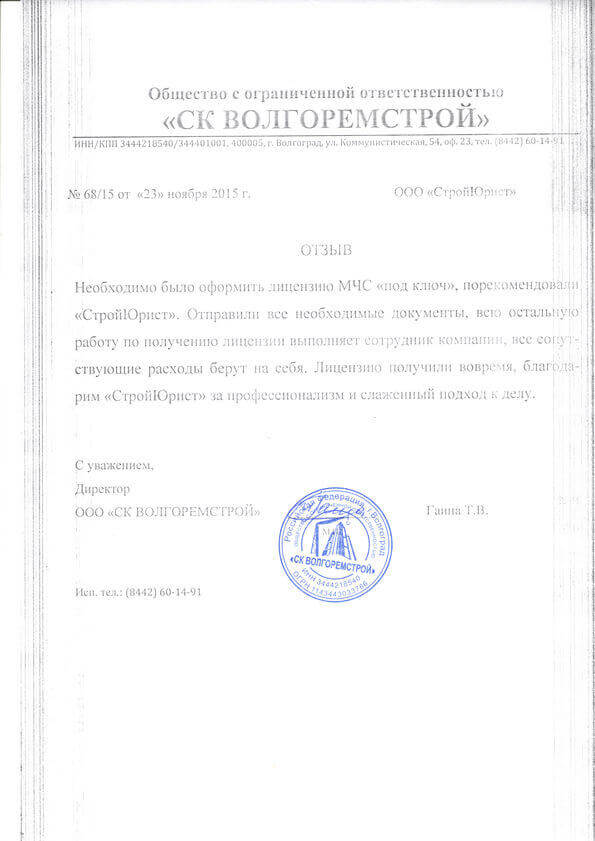 Отзывы клиентов "СтройЮрист" по лицензированию МЧС во Владикавказе