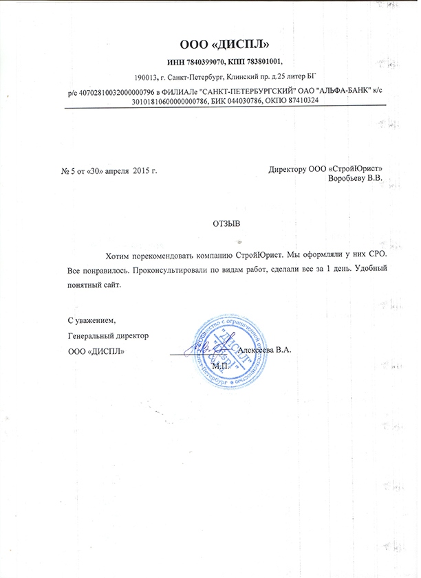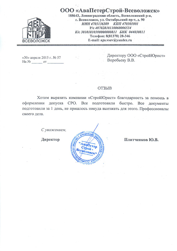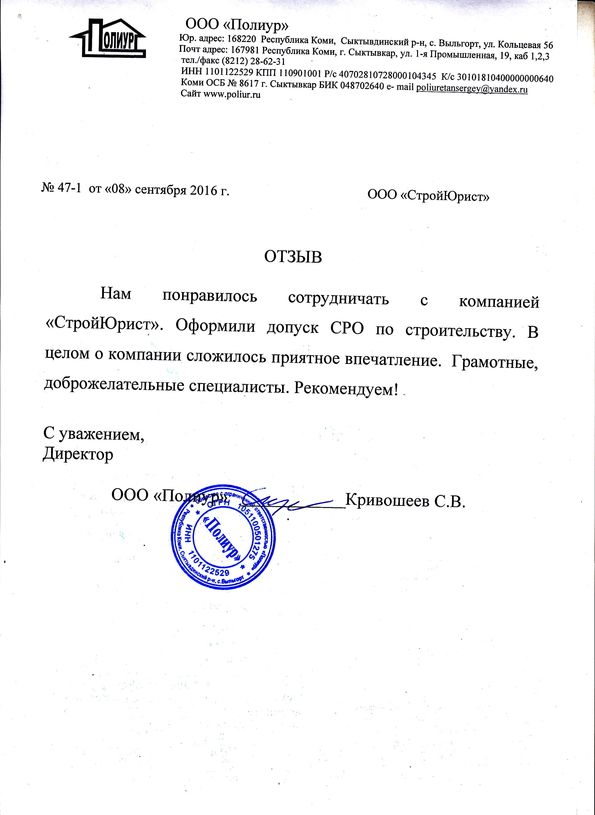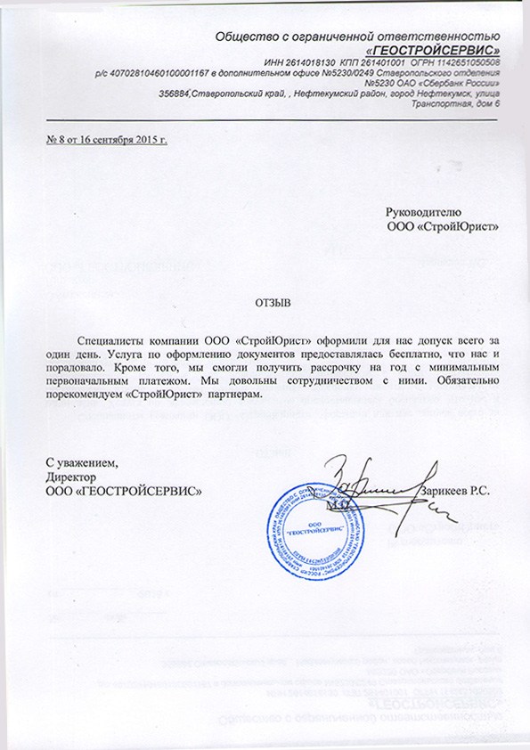 Отзывы клиентов "СтройЮрист" по вступлению в СРО во Владикавказе
